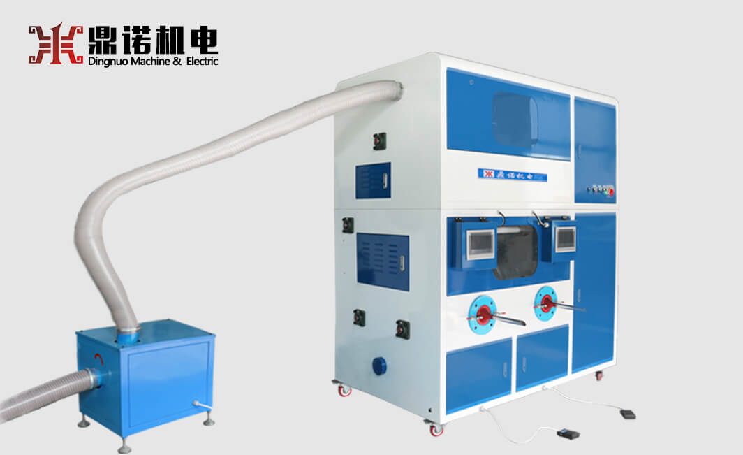 1、該款充絨機(jī)有四個充絨口,可獨(dú)立定量和充裝。利用高壓氣體吸取絨、棉,通過全自動稱重系統(tǒng),將設(shè)定克重的絨、棉精準(zhǔn)的充入裁片。