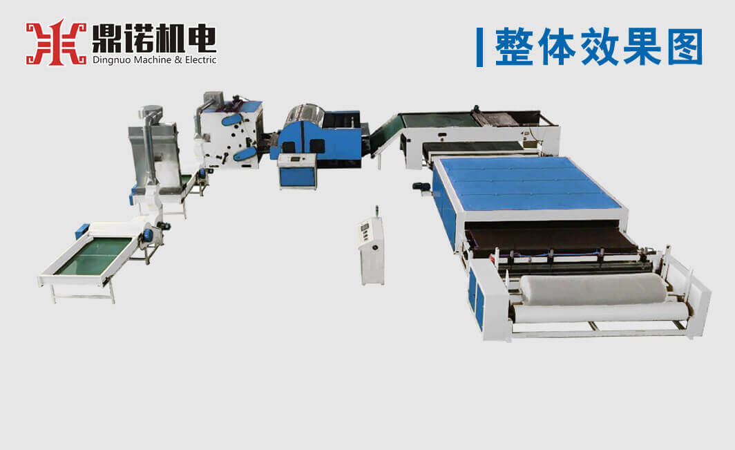 本公司這款機(jī)型即為:無(wú)膠棉、直立棉、化纖棉、熱熔棉/硬質(zhì)棉生產(chǎn)線。
