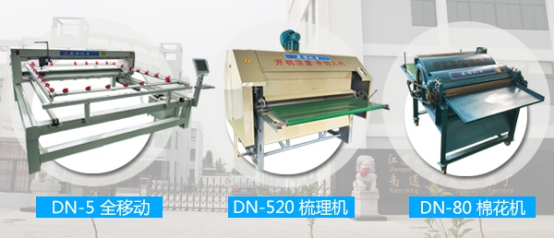 棉被加工生產(chǎn)線由棉被自動生產(chǎn)線:彈花機——梳理機——揉被機——電腦絎縫機(梳理機和揉被機可根據(jù)實際情況來選購,翻新舊棉被彈花機是必選機器,然后可以根據(jù)需求選購梳理機;希望棉花被胎變得結(jié)實一點,不那么蓬松就可選購揉被機)