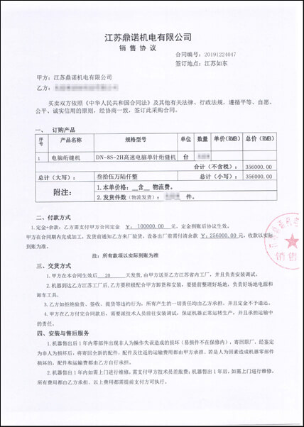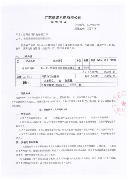 接到一批訂單,來不及生產(chǎn),向鼎諾采購了一批8S剪線型絎縫機,合同交貨期是15天,結(jié)果,一周就交貨,加班加點安裝調(diào)試。效率高、發(fā)貨,感謝鼎諾的支持,我們以后還會合作的。